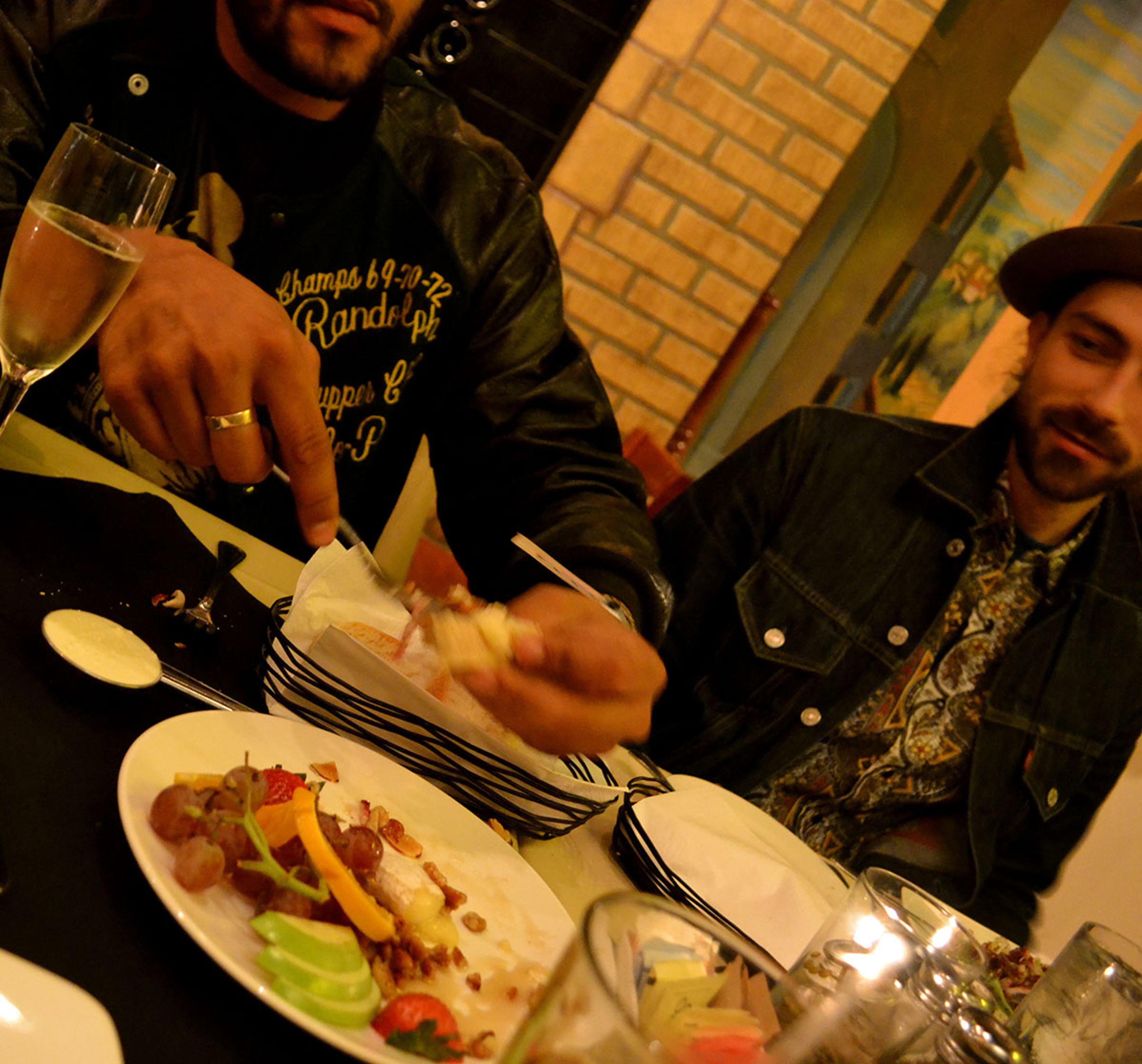 Dining with Twin Shadow was great but dining with them at The Grape was unreal. It seemed that the band enjoyed a relaxing break from the cycle of touring life. Toasts were made, laughter was shared, and George ended up drawing the House of Plates crew present on their plate of signing. Apparently, I look like Sal Mineo back when he was in the 1955 film "Rebel Without A Cause". Awesome.
