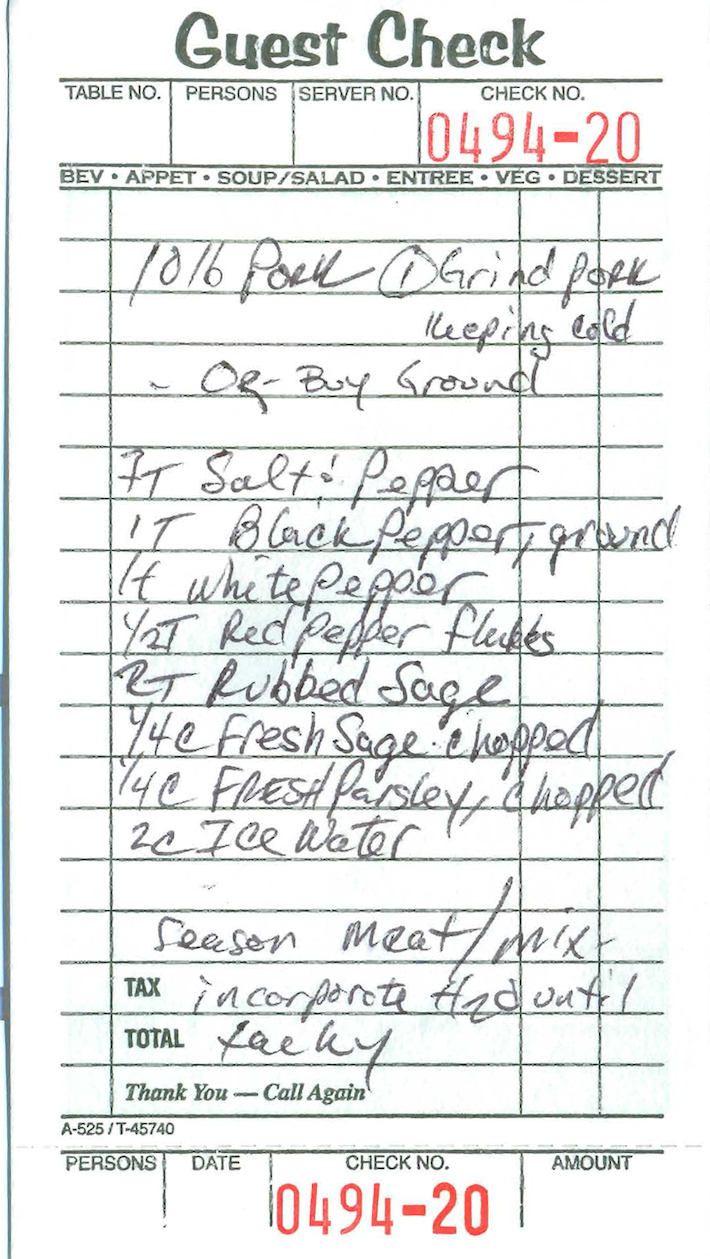-10 lb pork (grind pork keeping cold -or- buy ground)