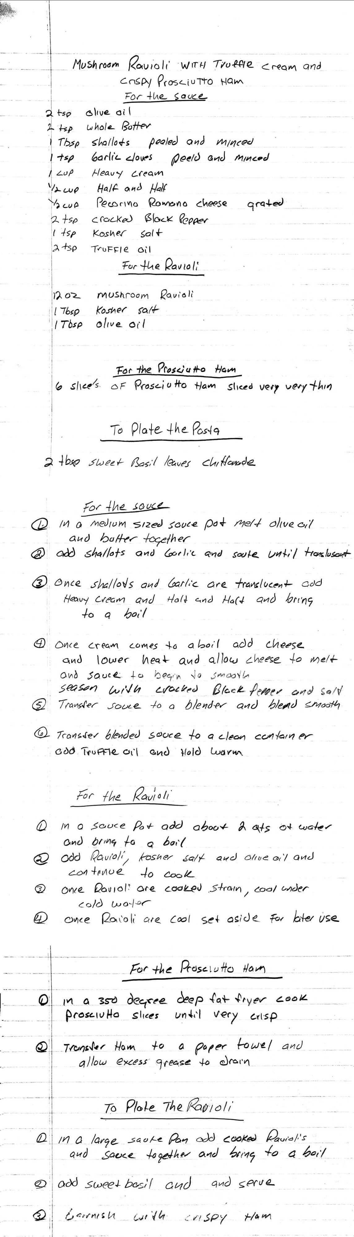 Mushroom Ravioli with Truffle Cream + Crispy Prosciutto Ham